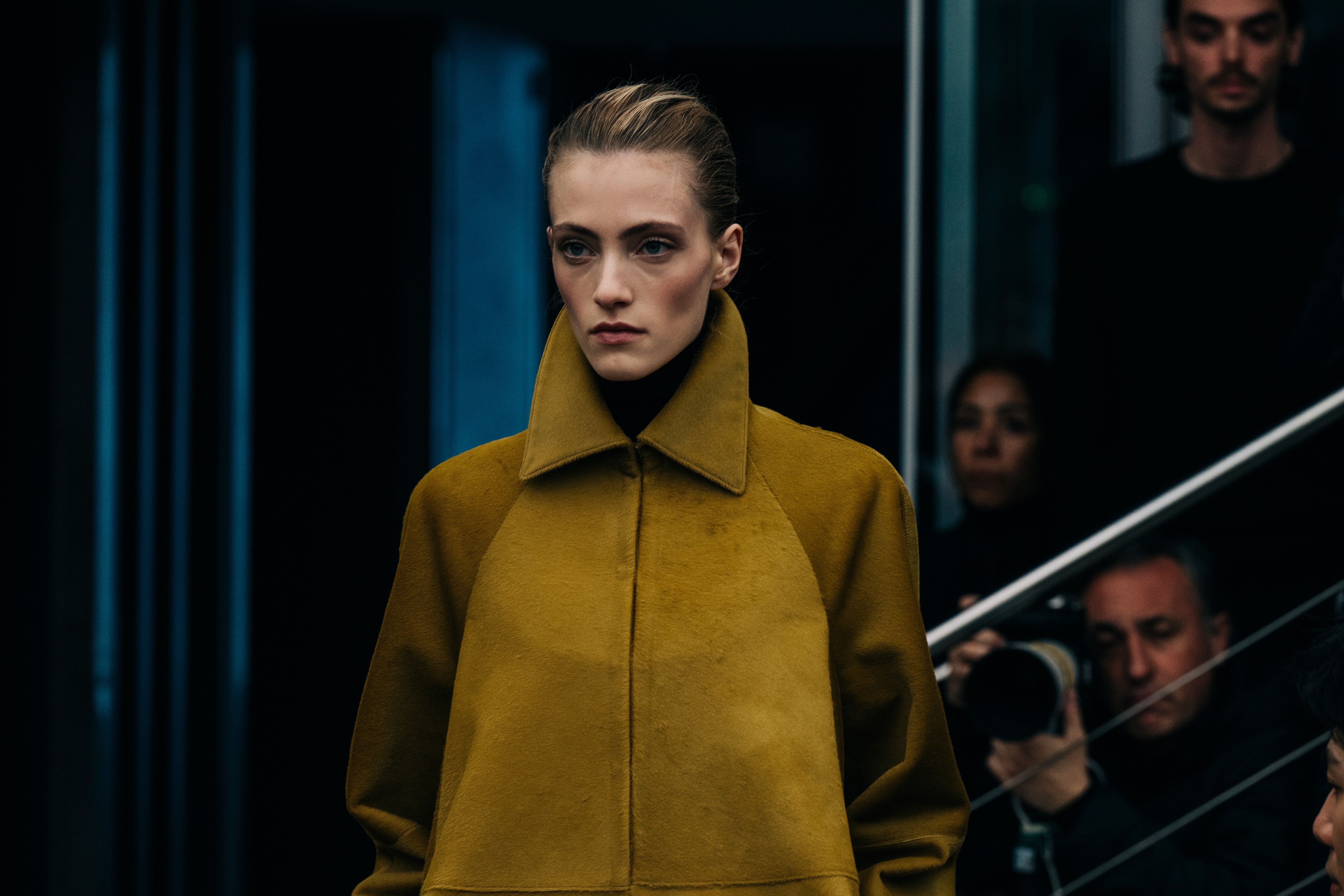 Uma despedida emocionante! Pieter Mulier apresentou nesta noite, em Paris, seu último desfile à frente da Alaïa, que contou com seus amigos Raf Simons e Matthieu Blazy sentados na plateia. A apresentação se iniciou com uma homenagem: fotos dos funcionários do ateliê foram exibidas no telão. “Essas são as pessoas que construíram [a maison Alaïa].